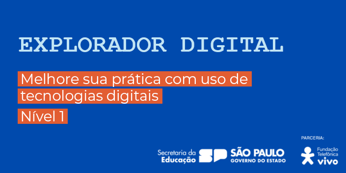 A Fundação Telefônica Vivo, em parceria com a Secretaria da Educação do Estado de São Paulo (SEDUC-SP), apresenta a formação “Explorador Digital” voltada para docentes que buscam iniciar o uso de tecnologias digitais em suas práticas pedagógicas. O curso abrange três dimensões de saberes em relação ao uso da tecnologia na Educação: ensino e aprendizagem com uso de tecnologias digitais, cidadania digital e desenvolvimento profissional.