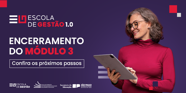 A Escola de Gestão 1.0 — 1ª Edição/2026 segue avançando em seu percurso formativo. Neste momento, os(as) cursistas estão na etapa de conclusão do Módulo 3, com a finalização das atividades avaliativas no Ambiente Virtual de Aprendizagem (AVA).