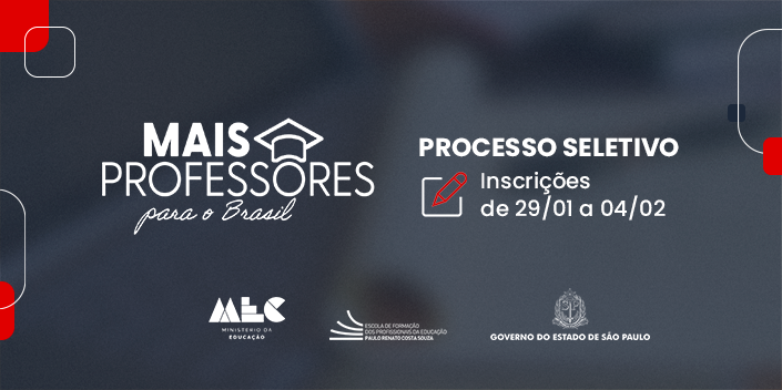A Secretaria da Educação do Estado de São Paulo (SEDUC-SP), em parceria com o Ministério da Educação (MEC), anuncia, por meio da Escola de Formação e Aperfeiçoamento dos Profissionais da Educação “Paulo Renato Costa Souza” (EFAPE), a realização de processo seletivo simplificado para o Programa Mais Professores.