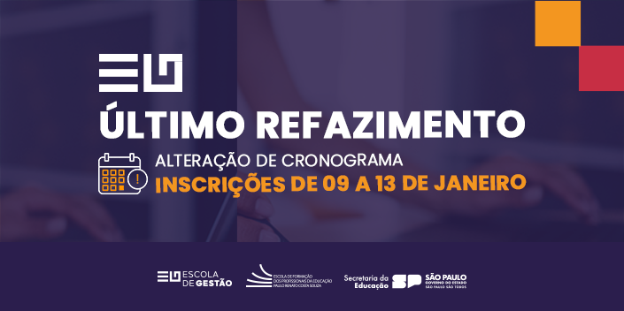 O último período de refazimento do curso Escola de Gestão – 1ª Edição/2025 ocorrerá de 19/01 a 22/02/2026. Para os cursistas que ainda possuem módulos pendentes, essa será a última chance de regularizá-los para conquistar a certificação.